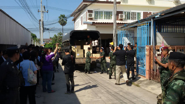 วันนี้ (26 พ.ย.) พล.ต.นพพร เรือนจันทร์ ผบ.พล.4 นำกำลังทหารชุดปฏิบัติการ พล.ร.4 จำนวน 50 นาย พร้อมนายแพทย์ บุญเติม ตันสุรัตน์ สาธารณสุขจังหวัดพิษณุโลก สรรพากรจังหวัดพิษณุโลก เจ้าหน้าที่กรมสอบสวนคดีพิเศษ (ดีเอสไอ) ตำรวจภูธรเมือง บุกยึดโกดังผลิตภัณฑ์เสริมอาหาร “โอ้โห บายปูนิ่ม มายแสลมมี่ รสมิกซ์ ฟรุ้ต” เลขที่ 918/54 หมู่ 7 ต.อรัญญิก อ.เมือง จ.พิษณุโลก ก่อนขนย้ายและยึดสินค้าใส่รถบรรทุกทหาร 2 คัน